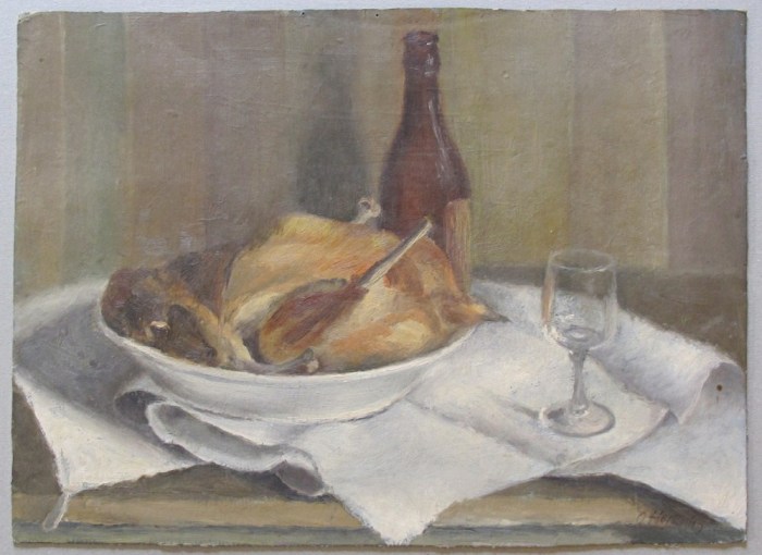 O. Hejkrlík - Zátiší s pečenou husou (olej na lepence)