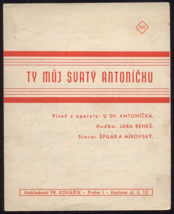Ty můj svatý Antoníčku - píseň z operety: U sv. AntoníčkaSkladem50 Kč