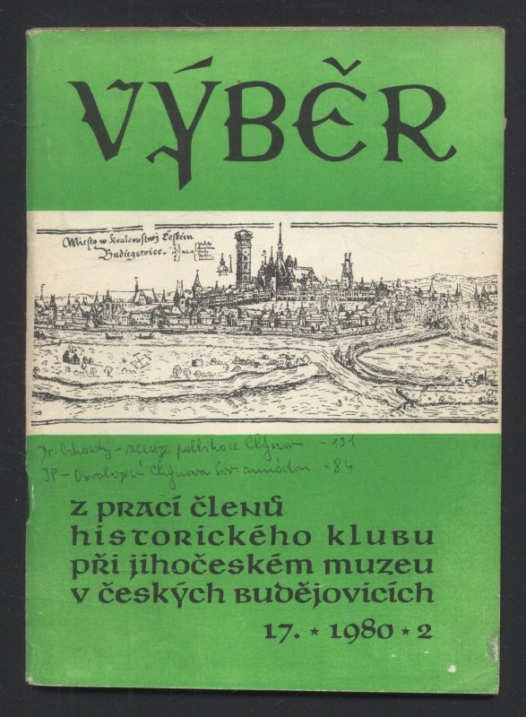 Výběr 1980/2 (17. ročník) Z prací členů Historického klubu při Jihočeském muzeu v Českých Budějovicích (jedno číslo)